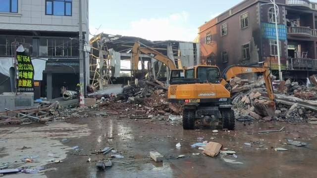 6月9日9:00开始清孔,持续到18:00许清孔作业完成。为防止导向孔不坍塌或堵塞,从18:00就开始直接拉管。开始拉管时,由徐延军操作420kN水平定向钻机,其他人员配合作业,一直到20:00许发现拉不动了,又临时从附近调换了一台840kN水平定向钻机,从21:57开始改由黄应腿操作,接续拉管。22:22,事故坍塌房屋黄淑金老太太发现自家门口的孔在冒东西,从房屋侧门侧巷走出来,走到钻机旁向作业人员付朝光反映情况,付朝光转告黄应腿后,黄应腿让付朝光陪同黄淑金去查看情况,而黄应腿继续操作钻机拉管,但过了约7分钟,钻机没水停机。接着,黄应腿也跟着走向事故坍塌房屋查看情况,走出约30米开外,发现事故坍塌房屋外雨棚南侧地上有一个隆起的30cm高的鼓包,并嗅到很浓的天然气味道,感觉天然气管道泄漏了,于是迅速掉头往回跑,边跑边用手机拨打天然气公司工作人员电话,电话一接通,刚说了没两句话就发生爆炸,导致一栋两层半石头与砖混结构自住民房倒塌,爆炸冲击波对邻近建构筑物产生不同程度破坏,现场一片“狼藉”。